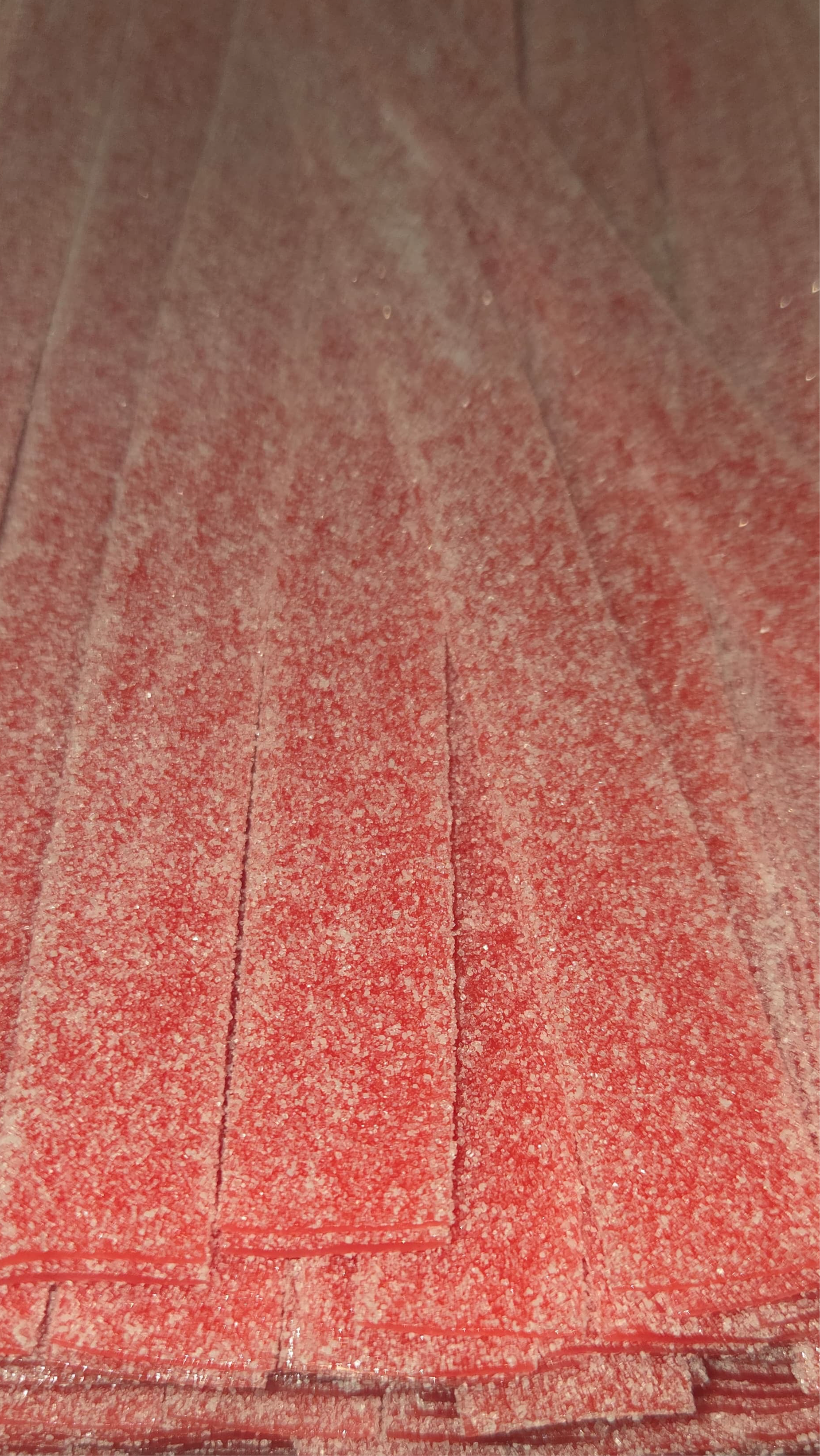 INGREDIENTS: Sucre, sirop de glucose-fructose, farine de blé (gluten), eau, acidifiants (E330, E296, E331iii), humectant (E420), graisse de palme, amidon de maïs, émulsifiant (E471), arômes, colorant (E133).